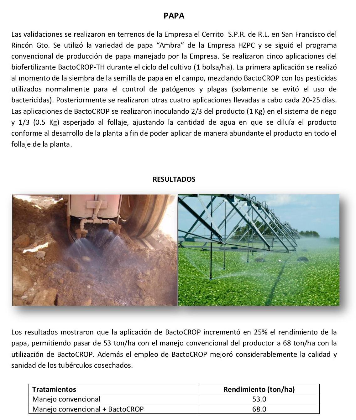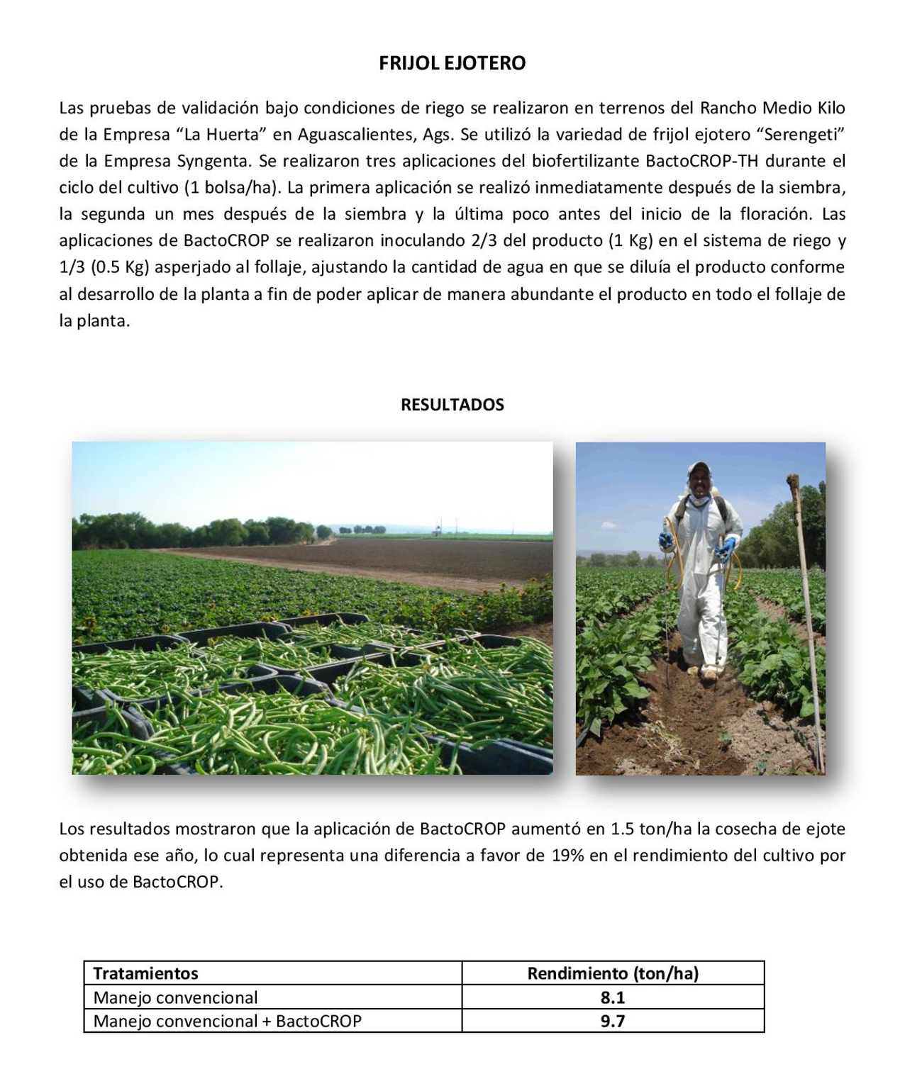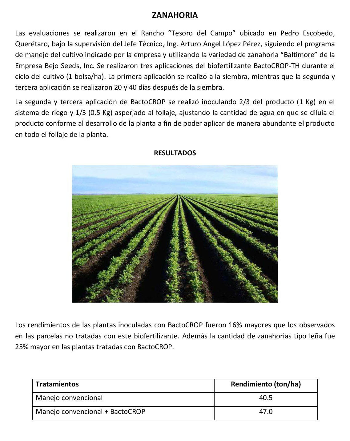 Resultados en campo