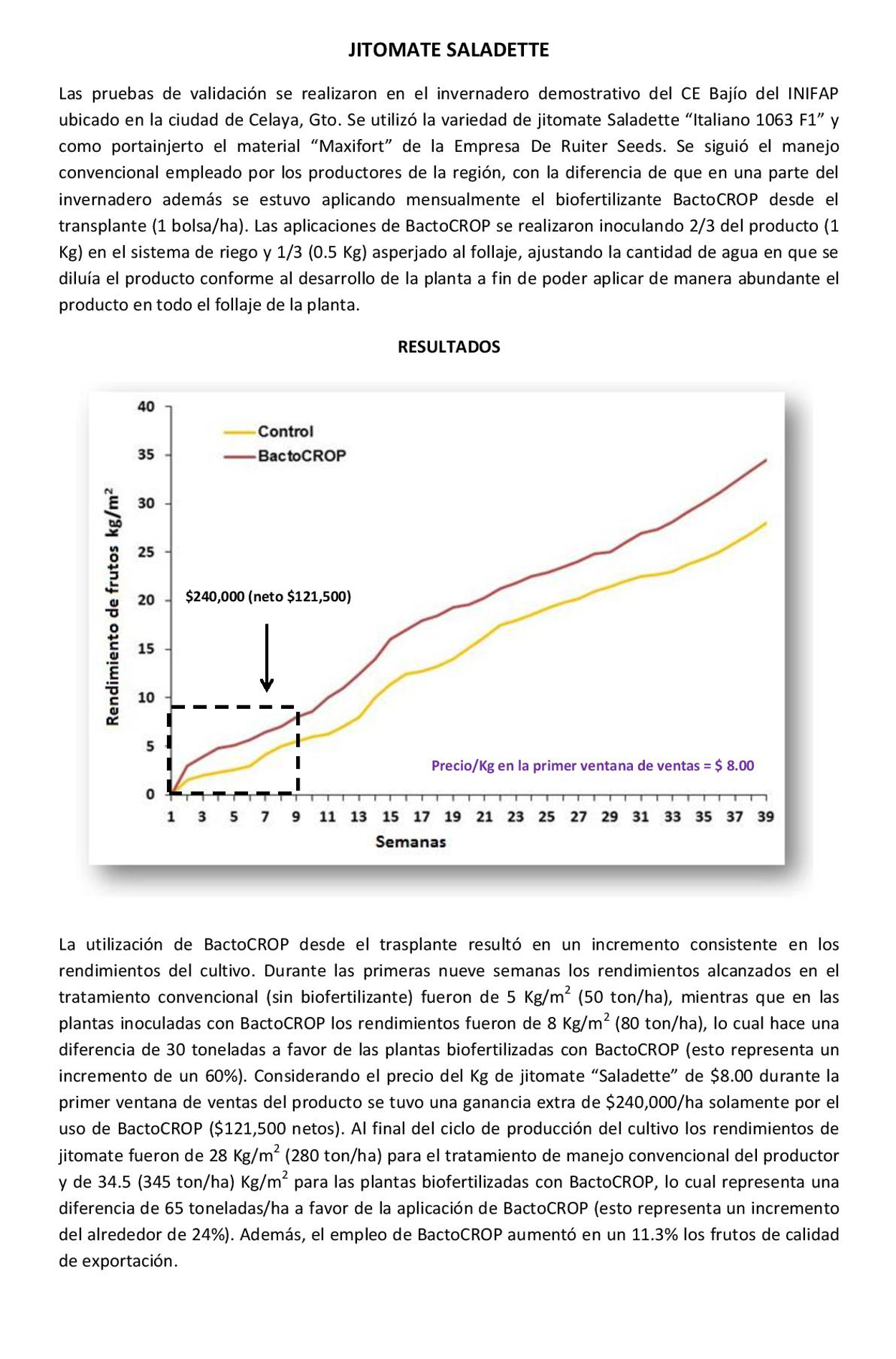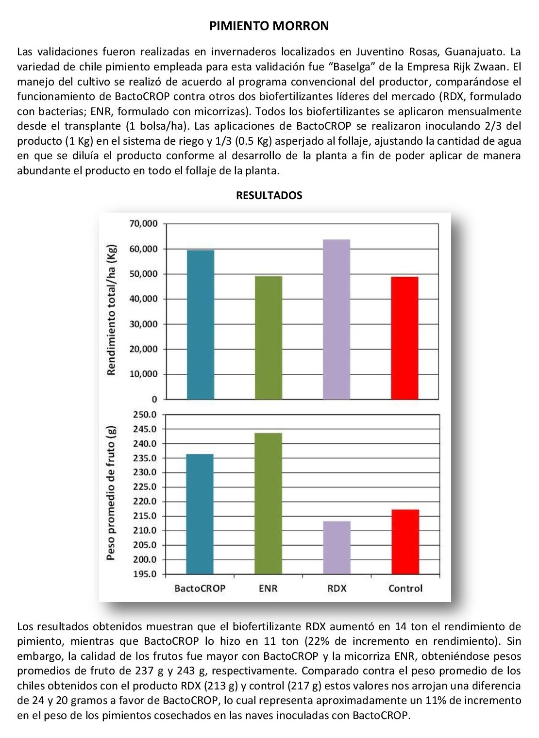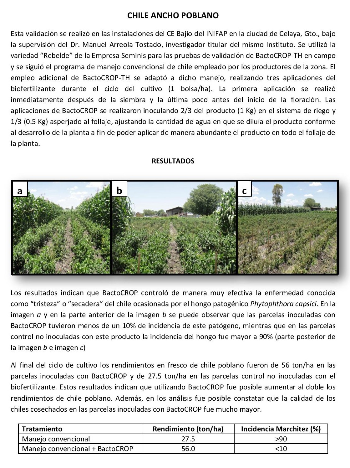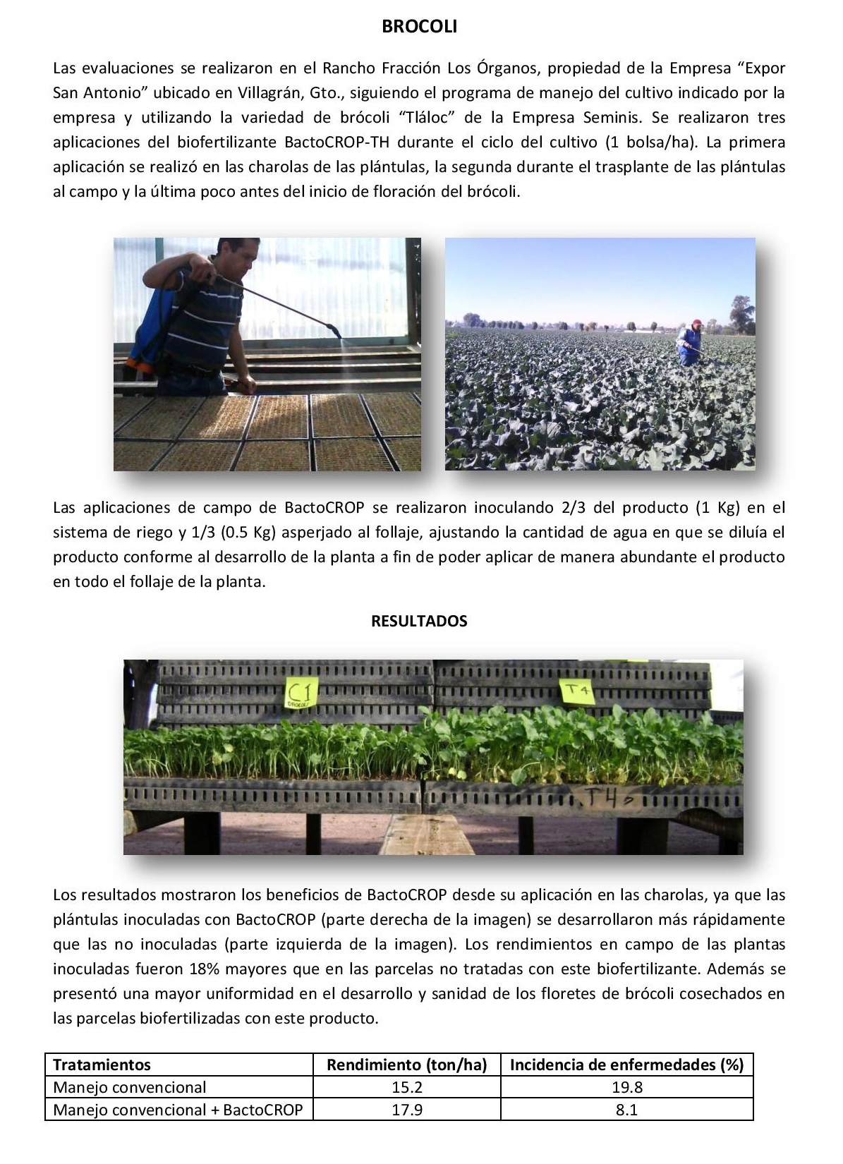Resultados en campo